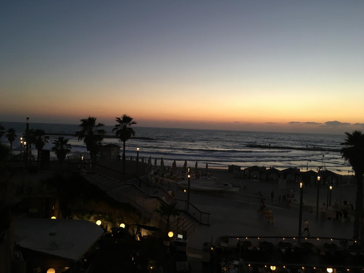 At the end of May 2017, 23 MSc Entrepreneurship students, along with Progamme Director Simon Hulme, travelled to Tel Aviv to discover the Israeli startup ecosystem. Most of the students flew in over the weekend in order to be in Tel Aviv to attend an informal welcome dinner. The sight of the setting sun at Tel Aviv beach welcomed us and filled our hearts with joy for the week ahead. At the restaurant, Simon welcomed us all and set the tone for an exciting week.