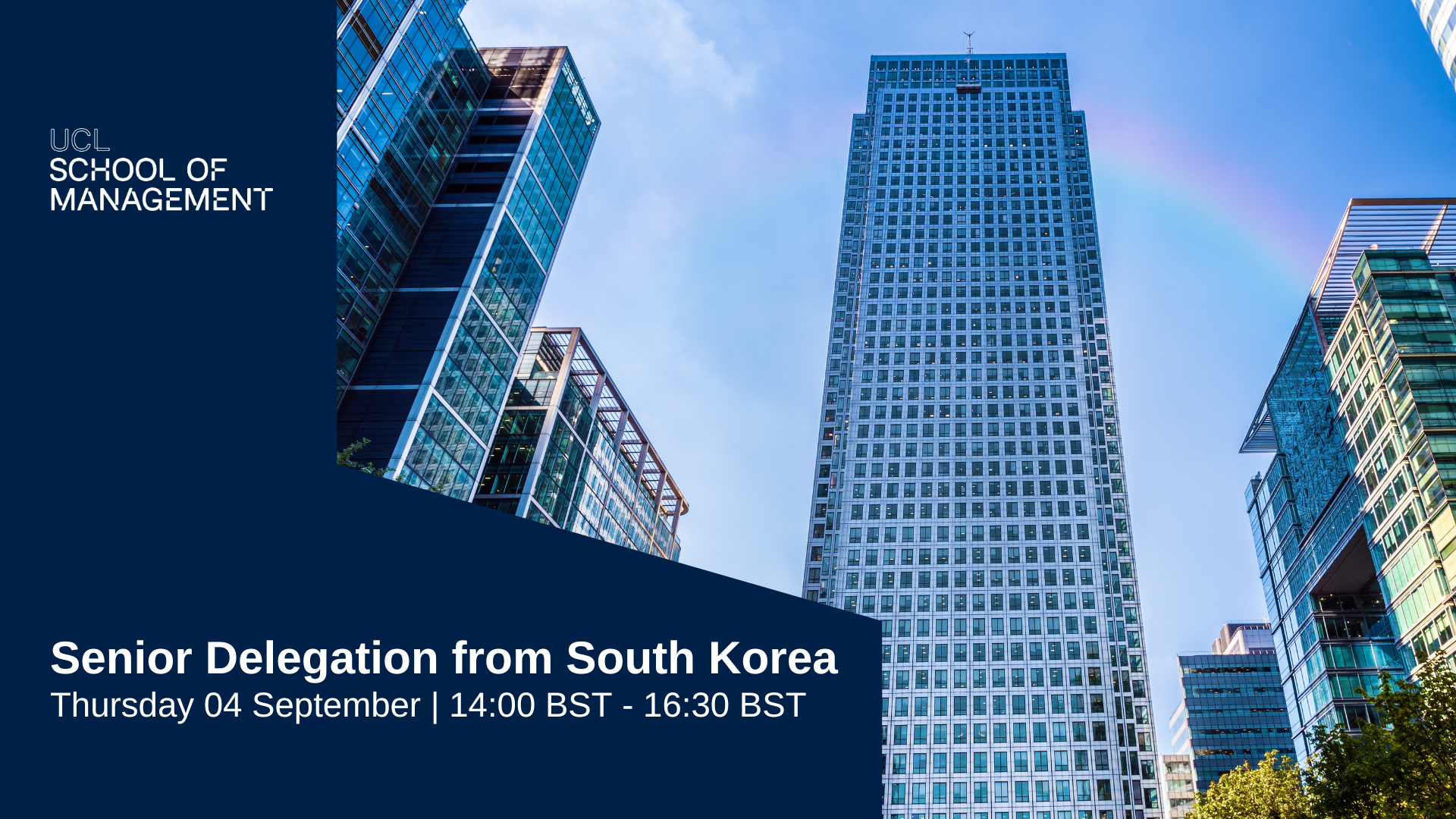 Attendance at this event is by invitation only, and is open to UCL School of Management staff who would like to join us in welcoming the Korean delegates. If you are interested in attending, please reach out to the Marketing & Communications team. *Limited places available.