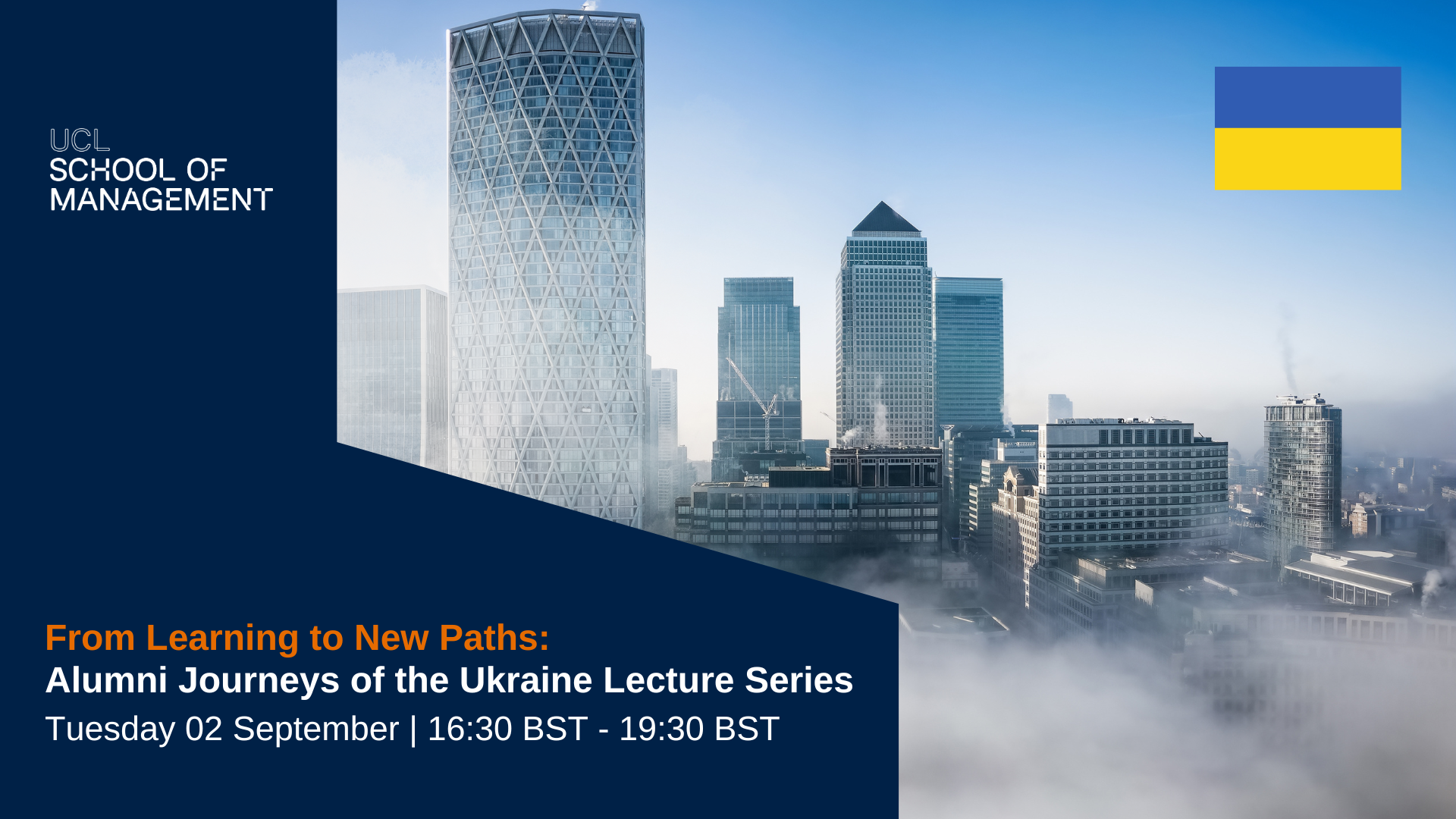 Join us on Level 50 of UCL School of Management’s home in One Canada Square from 16:30 BST on Tuesday 02 September to hear from our Alumni’s who will be sharing their journeys since completing the lecture series, offering insights into where they are today.