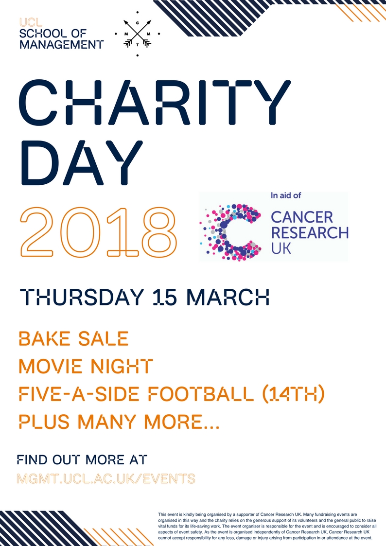 On Thursday 15 March, the UCL School of Management will be holding a series of events in aid of Cancer Research UK.