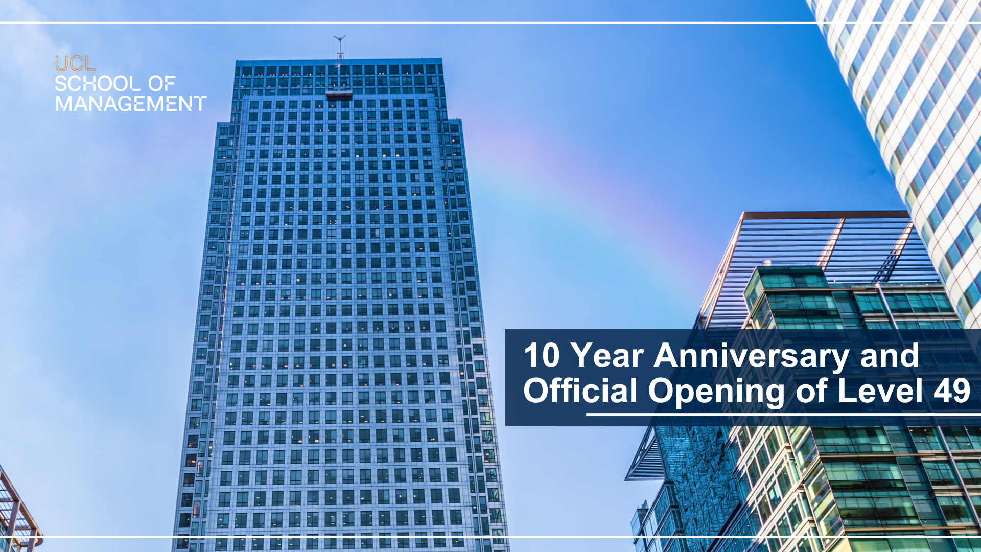In commemoration of UCL School of Management’s 10th anniversary and the official opening of our new floor - Level 49 of One Canada Square - we warmly invite you to join us for an evening of celebration, networking and refreshments to mark these significant milestones for the School.