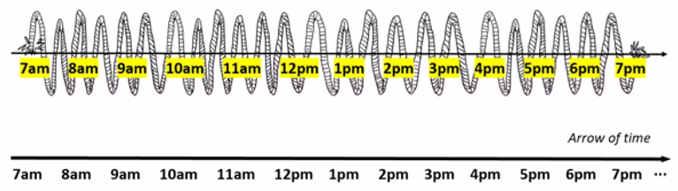 Yes, particularly when I started trying to visualise the ideas. One moment that really shifted things for me was developing the illustrations, especially the idea of experienced time as something with ‘thickness’ of the time line. When time feels slow, it’s as if that line becomes thicker and richer; when time flies, it becomes thin.