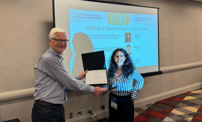 UCL School of Management PhD candidate Deepanshi Bhardwaj has been named as a finalist in the 2025 Production and Operations Management Society (POMS) Product Innovation & Technology Management (PITM) Best Student Paper competition.