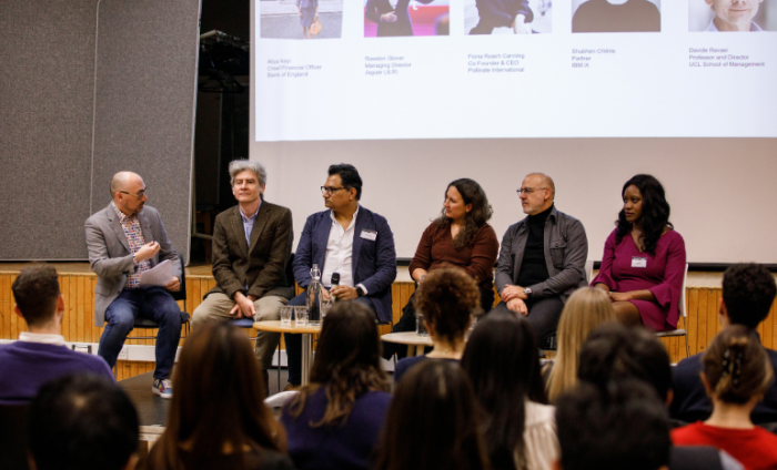 On the night, we were delighted to welcome Afua Keyi, Chief Financial Officer at Bank of England, Rawdon Glover, Managing Director at Jaguar, Fiona Reach Canning, Co-Founder and CEO of Pollinate International, Shubhen Chitnis, Partner at IBM iX, as well as UCL School of Management’s very own Director Davide Ravasi.