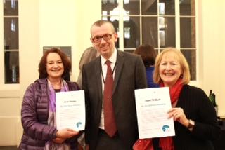 The awards were presented by Professor Anthony Smith, UCL Vice Provost (Education), pictured with Jane Burns and Jane Britton.