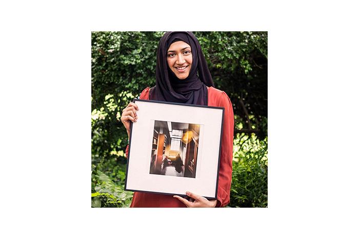 Shamita with a framed copy of her photo