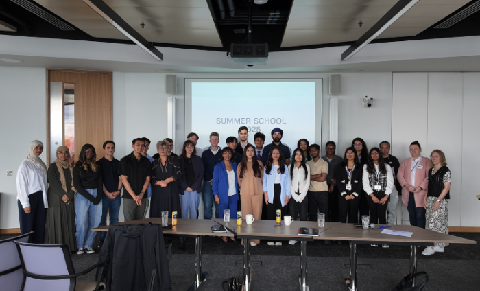 Participants of the 2025 Summer School alongside UCL School of Management’s Susan Smith and Edyta Kostanek, as well as panellists Jane Hollinshead, Deen Kobir, Usha Kong and Kamya Marwah.